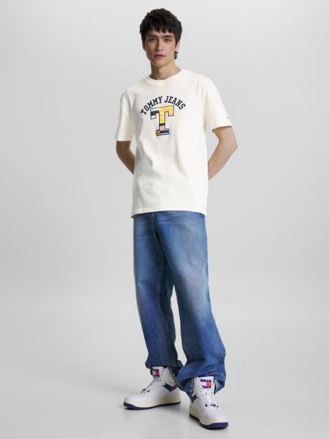 Krémove Pánske Tričko s Potlačou Tommy Jeans