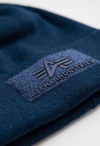 Táto námornícka modrá pletená čiapka Alpha VLC je elegantným a praktickým doplnkom vhodným pre chladnejšie mesiace.