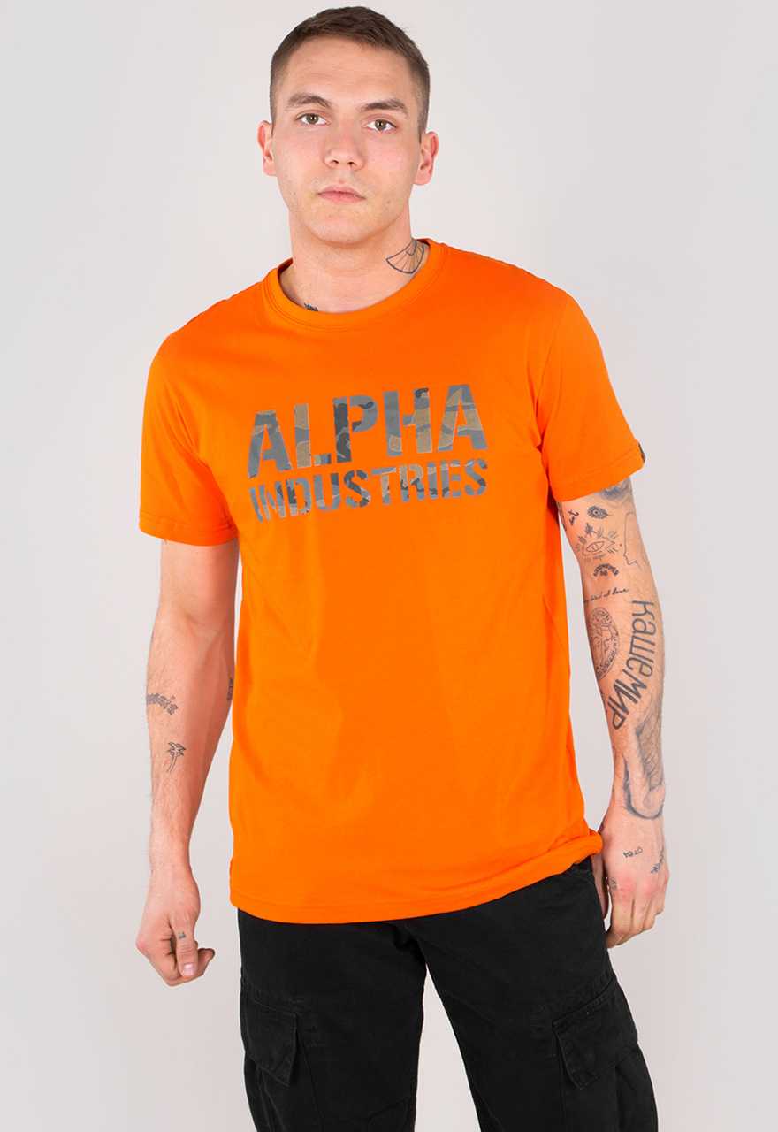 Oranžové Pánske Tričko s Maskáčovým Potlačou Alpha Industries