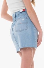 Prines si do svojho šatníka džínsový vánok s touto denimovou sukňou Tommy Jeans. Jej klasický strih “mom” padne skvele a doprajú ti slobodu pohybu. Svojim roztrhaným lemom dodáva mladistvý a hravý nádych. Ideálna na letné dni alebo na kombinovanie s pančuchami v chladnejšom počasí.