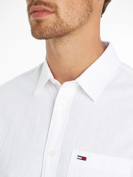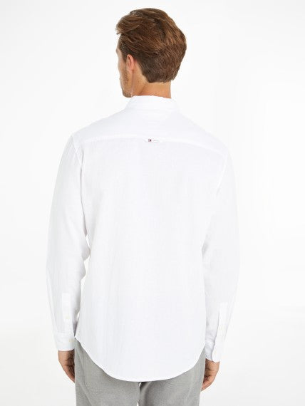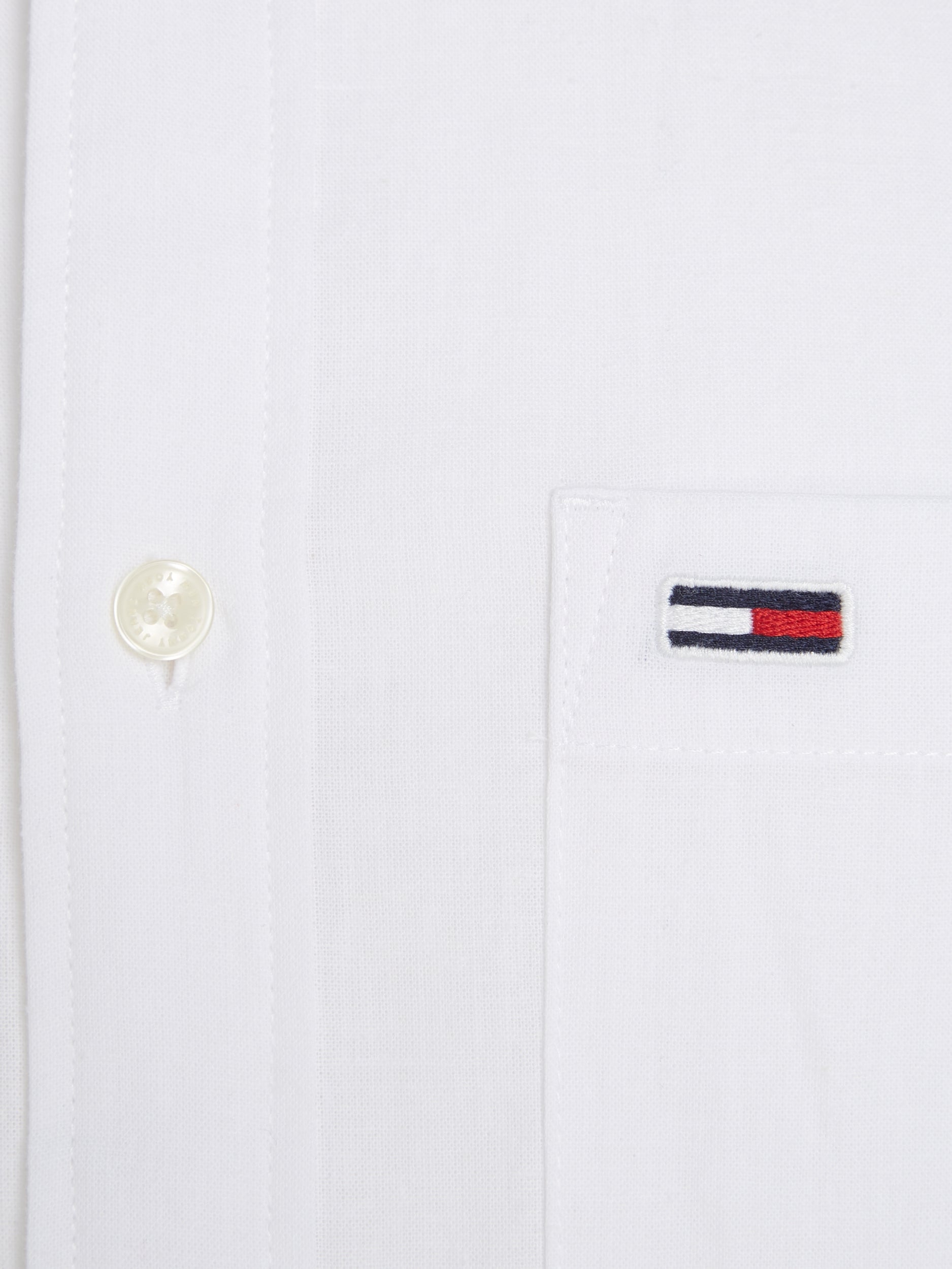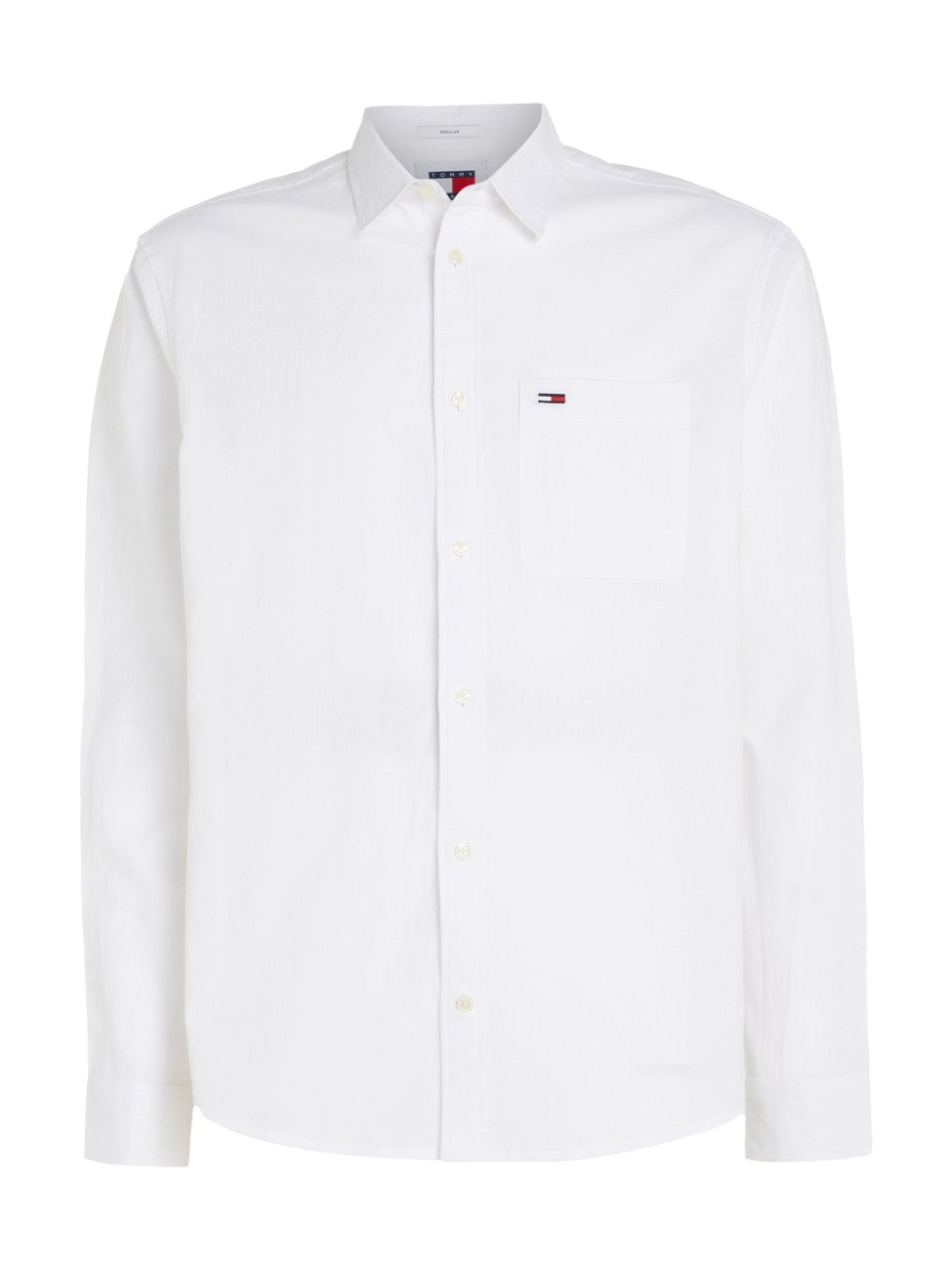 Táto pánska košeľa Tommy Jeans je definíciou čistého štýlu a pohodlia. Látkový materiál dodáva košeli nadčasový vzhľad, zatiaľ čo detailná výšivka loga na prsnej vrecku pridáva diskretne luxusný prvok.