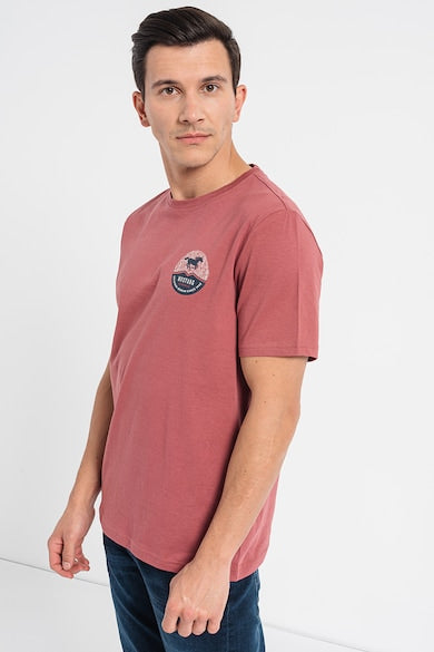 Oslavte legendárnu kvalitu a štýl s týmto tehlovým pánskym tričkom Mustang, ozdobené vintage odznakom na hrudi.