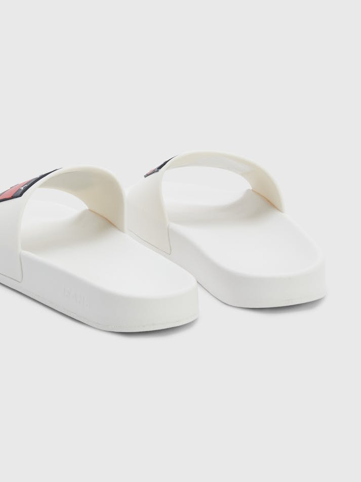 Tieto biele šľapky od značky Tommy Jeans kombinujú pohodlie a ikonický štýl, vďaka ktorému budú ideálnym spoločníkom pre letné mesiace.