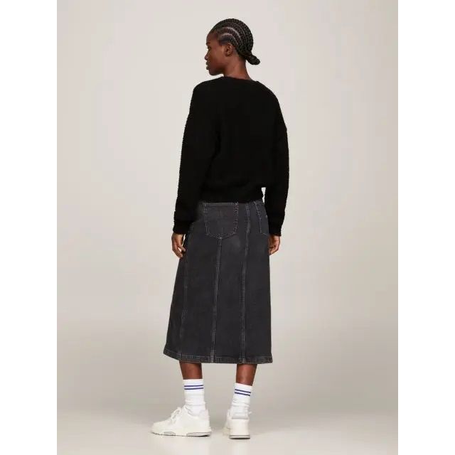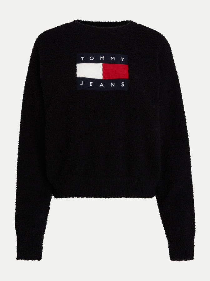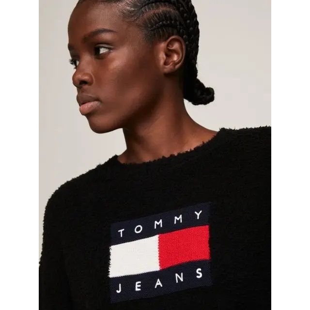 Tento čierny dámsky sveter značky Tommy Jeans kombinuje pohodlie s nadčasovým štýlom. Mäkký materiál zaisťuje teplý a útulný pocit, zatiaľ čo výrazné logo na prednej strane dodáva kúsok ikonický charakter.